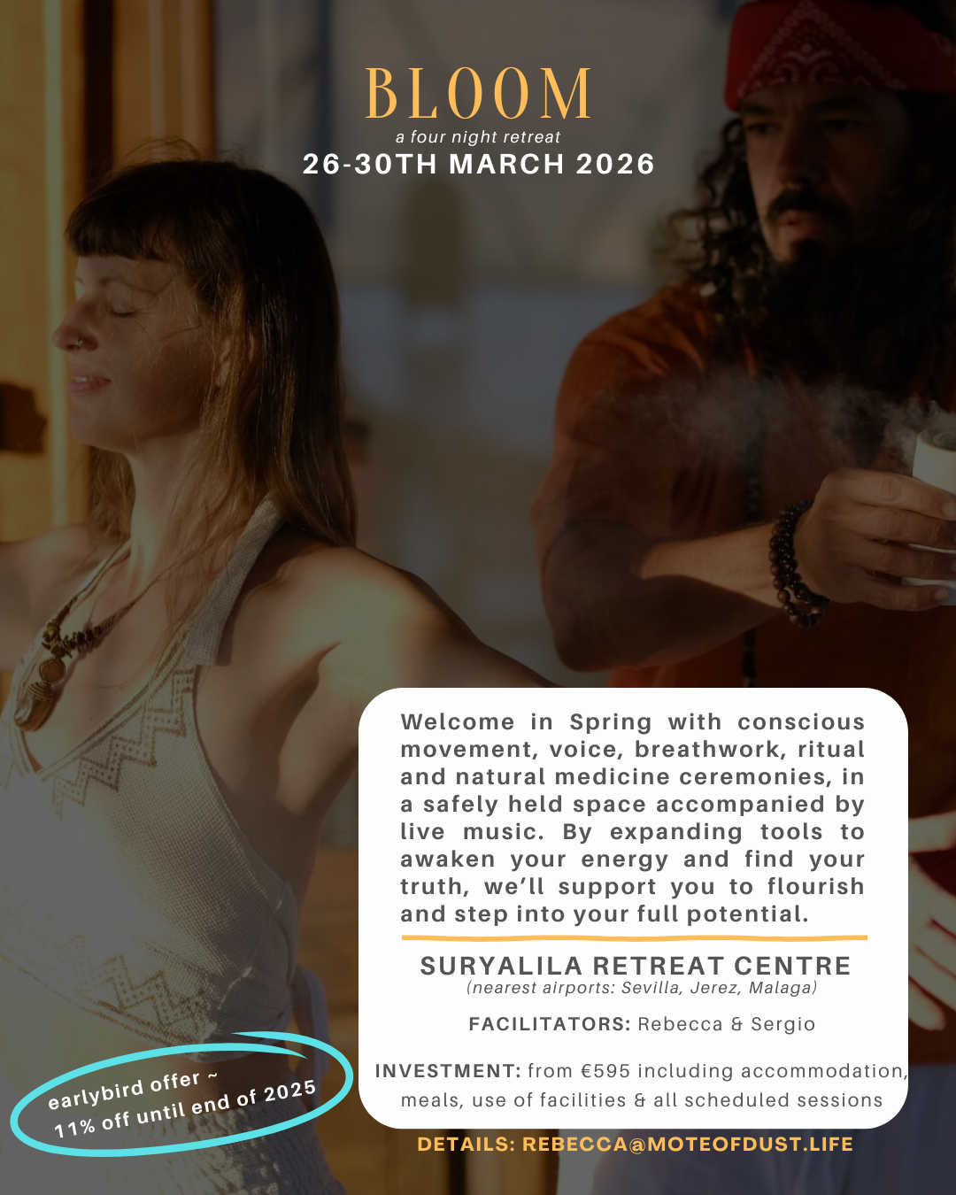 upcoming retreats: 2-6 January & 26-30 March 2026, Suryalila retreat centre (near Sevilla)